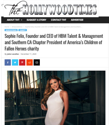 Sophie Felix, Founder and CEO of HBM Talent & Southern California CA Chapter President of America’s Children of Fallen Heroes Charity.