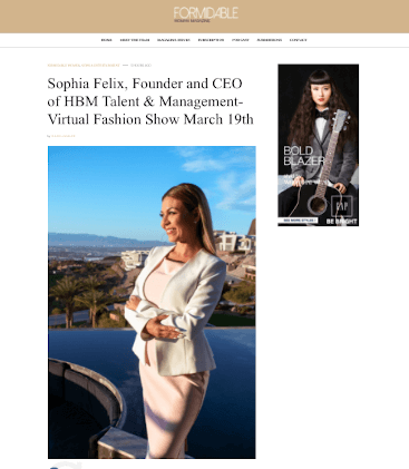 OFFICIAL PRESS RELEASE – Sophia Felix, Founder and CEO of HBM Talent & Management- Virtual Fashion Show March 19th
